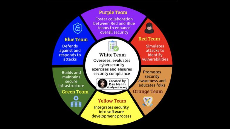 The cybersecurity color wheel categorizes cyber teams by their roles: